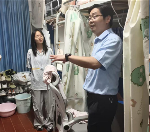 在学生宿舍区,曾国仔细查看了宿舍的住宿布局、采光通风、水电设施、消防安全等情况,逐一询问同学们“住宿是否习惯”“生活上有无困难”“日常出行是否便利”。看到宿舍内物品摆放整齐、环境干净整洁,配备了齐全的生活设施,能够满足学生日常居住需求,曾国对附属医院的宿舍安排给予了充分肯定。“良好的住宿环境是学生安心学习、顺利完成实习见习任务的基础,附属医院在住宿保障上考虑得很细致、很到位,为同学们提供了舒适便利的生活条件。”曾国叮嘱同学们要爱护宿舍环境,保持良好作息,相互关心帮助,营造和谐的住宿氛围。