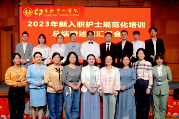 为系统检验2023年新入职护士规范化培训成果,凝聚护理事业发展合力,根据国家卫健委《新入职护士规范化培训大纲》要求,长沙市中心医院护理部于9月26日在健康管理中心一楼国际学术报告厅成功举办2023年新入职护士规范化培训总结暨述职汇报会。全体护士长、2023年新入职护士、2024年新入职研究生、护理规培学员、带教班主任及导师共计150余人参会。