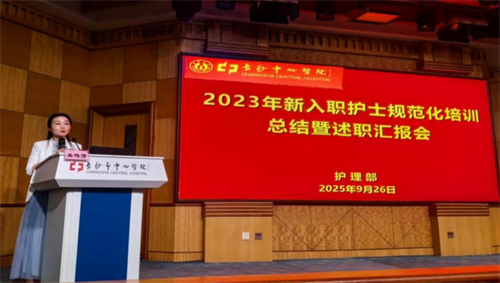 为系统检验2023年新入职护士规范化培训成果,凝聚护理事业发展合力,根据国家卫健委《新入职护士规范化培训大纲》要求,长沙市中心医院护理部于9月26日在健康管理中心一楼国际学术报告厅成功举办2023年新入职护士规范化培训总结暨述职汇报会。全体护士长、2023年新入职护士、2024年新入职研究生、护理规培学员、带教班主任及导师共计150余人参会。