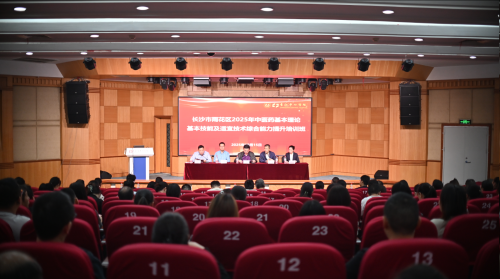 2025年10月15日,由长沙市雨花区卫生健康局主办、长沙市中心医院承办的“雨花区基层医疗卫生机构中医药基本理论基本技能及适宜技术综合能力提升培训班”在长沙市中心医院健康管理中心开班。雨花区卫生健康局副局长陈泽香、长沙市中心医院副院长刘鸣江出席开班典礼,医务部副部长肖小旺、中西医结合科副主任李琨主持会议。