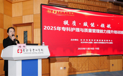 2025年11月18—19日由长沙市专科护理质量控制中心与长沙市中心医院联合主办的,“2025年专科护理与质量管理能力提升培训班”,在长沙市中心医院国际学术报告厅成功举办。本次培训班吸引了省内多家医疗机构的护理管理者、护理骨干及专科护士共300余人参与。
