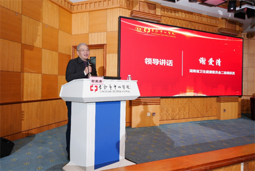 开幕式由长沙市中心医院党委书记邓平主持,湖南省卫生健康委员会二级调研员谢爱清,长沙市卫生健康委员会党组成员、副主任万胜,中南大学湘雅二医院党委书记柴湘平,湖南省专科护士发展工作委员会主任、中南大学湘雅二医院护理部主任黄伶智,长沙市专科护理质量控制中心主任、长沙市中心医院护理部主任吴传芳等出席。