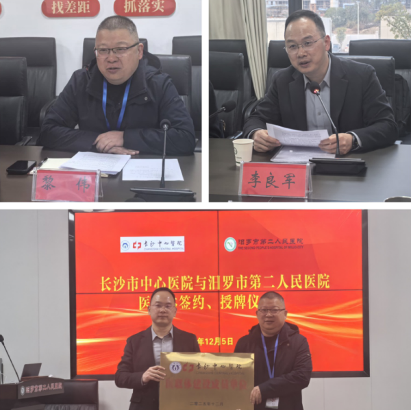 为进一步推动优质医疗资源下沉,助力基层医疗服务能力提升,方便群众就医。近日,长沙市中心医院与汨罗市第二人民医院正式签订紧密型医联体合作协议。签约授牌仪式在汨罗市第二人民医院顺利举行,标志着两院协同发展、共建共享的合作关系迈入全新阶段。