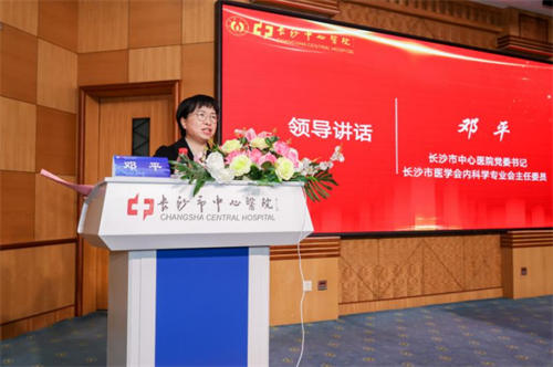 邓平致欢迎辞,她结合行业使命与医院实践提出三点期许:一是坚守“生命至上”初心,将学术经验转化为解决临床难题的能力;二是激活“人才驱动”引擎,助力青年医师成长;三是秉持“协同共赢”理念,凝聚全市内科同仁合力,为健康长沙建设贡献力量。