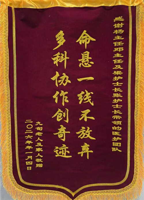 家属送来锦旗时哽咽道:“是你们一次次把他从生死线上拉回来,给了我们全家希望。”锦旗上“命悬一线不放弃,多科协作创奇迹”的赞语,既是2026年科室收获的第一份认可,更是医患同心、共克危难的真实见证——在这里,每一次守护,都是对生命至上信念的最好践行。