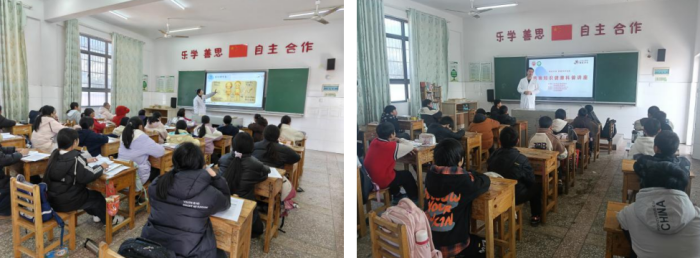 当天上午,洲田完全小学内掌声阵阵。长沙市中心医院妇产科专家为5-6年级30余名女学生开展生理卫生课堂,普及青春期健康知识,引导孩子们树立积极心态。长沙核美丽医疗美容门诊部医师则为5-6年级40余名男学生带来防烫伤安全教育讲座。
