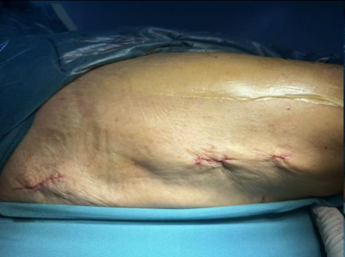 经过麻醉科、心血管内科、重症医学科等多学科联合会诊评估,团队为老人制定了详尽的微创手术方案。12月16日,在椎管内麻醉下,科室主任、主任医师邓件良主刀,实施了“右股骨转子间骨折闭合复位髓内针内固定术”。手术仅通过几个约2—3厘米的微小切口,在C臂机实时透视引导下,精准植入髓内固定系统。整个手术过程出血量不足50毫升,历时约一小时,最大程度减少了对患者生理机能的损伤。