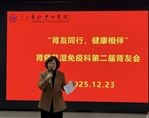 12月23日下午,长沙市中心医院(南华大学附属长沙中心医院)肾病、风湿免疫科举办第二届“肾友同行,健康相伴”肾友会。活动聚焦普及肾病防治知识、深化医患及病友沟通,旨在为肾病患者及家属带去切实有用的支持与温暖的陪伴。