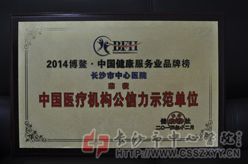 2014年12月5—7日,我院获得《健康报》主办的“2014中国健康服务公信力排行榜”评选活动“中国医疗机构公信力示范单位”。