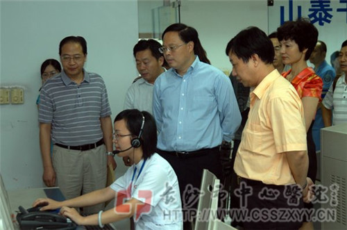 2010年8月16日,市长张剑飞、副市长何寄华、政府秘书长唐志浩等领导在市编委、市发改委、市财政局主要负责人陪同下,对卫生系统进行调研,来我院120急救中心现场视察。