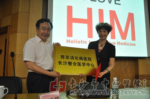 2015年6月24日,中国工程院副院长,樊代明院士为我院职工带来精彩讲课,并为我院授牌“西京消化病医院长沙整合医院”,杨励院长也将“长沙市中心医院首席科学家”的聘书交给樊院士。