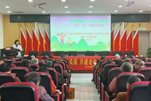 3月12日是第二十一个“世界肾脏日”,今年的主题是“人人享有肾脏健康:关爱生命,守护地球”。肾脏病并非遥不可及,它和高血压、糖尿病一样,可控、可治,更关键的是可防!为提高市民对肾脏健康的认知,3月10日上午,长沙市中心医院(南华大学附属长沙中心医院)肾病、风湿免疫科主任文锐带领专家团队,走进了东山街道边山社区。一场干货满满的“肾脏健康”科普讲座和暖心义诊,吸引了200多位社区居民参与。