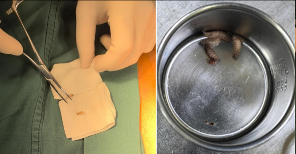 “蝇蛆病,是由蝇类幼虫(蛆)侵入人体组织或腔道所引发的一种寄生虫病。虽然这种病并不常见,但极有可能导致继发感染、组织坏死等严重并发症,威胁患者的生命健康。”长沙市中心医院胃肠外科主任医师侯湘德介绍,为确保彻底清创,防止残留,胃肠外科侯湘德、陈志豪等医疗团队当即为老人实施了急诊手术。在局部麻醉下,医生凭借精细操作,使用专业器械将脐窝内的蛆虫逐一完整取出,并对脐部进行了彻底消毒、冲洗和清创。手术过程顺利,术后王爷爷的疼痛感即刻显著缓解,目前身体各项指征趋于稳定。