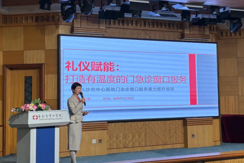 为进一步贯彻落实国家卫生健康委《改善就医感受提升患者体验主题活动方案(2023—2025年)》精神,深化医疗服务内涵建设,切实将人文关怀理念转化为窗口服务的实际行动,1月28日,长沙市中心医院门急诊党总支、医技党总支、财务部党支部联合开展“礼仪赋能:打造有温度的门急诊窗口服务”专题培训。门急诊各窗口科室全体医务人员共三百余人参会,会场座无虚席、氛围浓厚,一场以党建促业务、以业务强服务、以党员带全员的能力提升专项行动全面铺开。