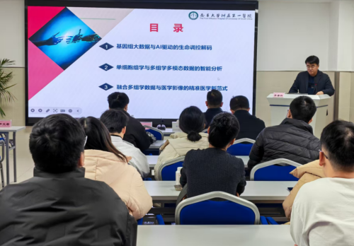 随后,李春权教授以“基因组大数据与AI驱动的生命调控解码”“单细胞组学与多组学多模态数据的智能分析”“融合多组学数据与医学影像的精准医学新范式”为核心内容展开专题授课。他结合自身丰富的科研经验和项目申报经历,深入浅出地讲解了国自基金申报的关键技术、创新方向及注意事项,为在场科研人员带来了一场干货满满的学术盛宴。