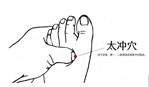 1.太冲穴:位于足背,第一、二跖骨结合部前方凹陷处。号称“出气筒”,心情不爽时按揉5-10分钟,专消无名火。