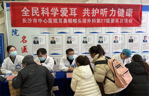 3月3日是第27个全国爱耳日,长沙市中心医院(南华大学附属长沙中心医院)耳鼻咽喉头颈外科在门诊大厅举办“关爱听力健康”主题讲座及义诊,为市民免费提供中耳炎筛查、耳聋耳鸣咨询,普及科学护耳知识。该院耳鼻咽喉头颈外科副主任周定刚指出,噪音环境及不当使用耳机,已成为年轻人听力下降的重要诱因,科学用耳护耳至关重要。