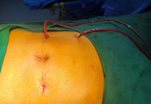 整台手术仅在患者腹部留下了4个0.5—1.0厘米的“钥匙孔”。相较于传统开腹手术的大切口,腹腔镜技术的应用大大减少了手术创伤,术中出血极少。同时,该术式最大限度地降低了医务人员在术中与患者开放性病灶的接触风险,在特殊感染防护上优势明显。