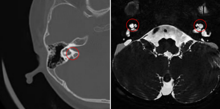 乐乐出生即被确诊为“先天性重度感音神经性聋”,佩戴高端助听器一年多,语言发育仍无进展。父母慕名找到了长沙市中心医院冯永教授。经过详细问诊与系统评估,冯永教授判断,乐乐残存的听神经尚有潜力,而“人工耳蜗植入”可能是唯一的解决方案。然而,术前的影像学检查揭示了一个更复杂的挑战:乐乐患有典型的Mondini畸形(耳蜗仅发育1.5圈,仅为正常人的一半)合并大前庭导水管综合征。这种复杂的内耳结构异常,使得人工耳蜗植入手术的难度和风险呈几何级数上升。