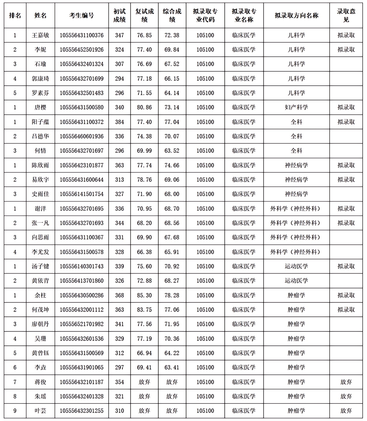 根据《南华大学2026年硕士研究生招生复试录取工作方案》、《南华大学附属长沙中心医院2026年硕士研究生复试录取工作方案》,经南华大学附属长沙中心医院研究生招生工作领导小组审核,现将2026年硕士研究生一志愿研究方向调整复试结果予以公示,公示期为2026年4月2日-12日,如对复试结果有异议,请联系内部监督审计部,联系电话:0731-85668104。