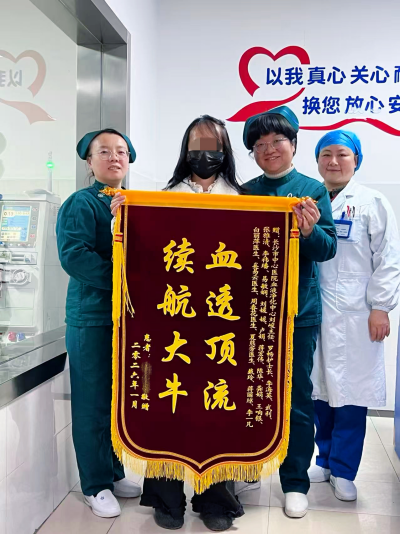 从焦虑不安到重拾信心,从千里求医到安心托付,张琳用一面俏皮又滚烫的锦旗写下心声:“血透顶流,续航大牛”。这八个字,是对默默守护血透患者生命的医护团队最鲜活、最真诚的致敬。