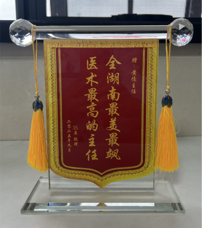 出院时,李女士亲手送上一面特意定制的锦旗。锦旗不大,甚至可以说有点“玲珑”,上面的字却格外霸气:“全湖南最美最飒医术最高的主任”。她真诚地说道:“是你们的专业与温柔,让我摆脱多年折磨,重获轻松生活!”