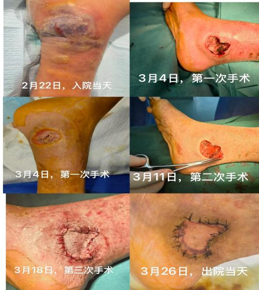 三次手术环环相扣、层层递进,既解决了深层坏死的核心问题,又兼顾老人身体耐受度,最大限度保护了肢体功能,减少了后期疤痕。在整个治疗过程中,医护团队紧密配合,换药、观察、护理一步不落,用耐心和细致为康复保驾护航。